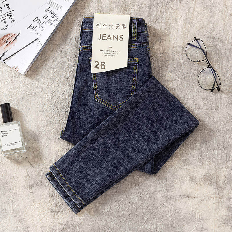 Jeans Female Korean High Waist All-Matching Skinny Slimming L Elastic New Tappered Pencil Women's Jeans Tide